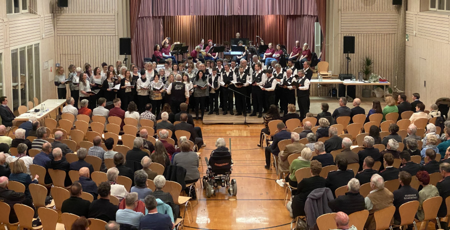 Bürgermeister-Stellvertreterin Schütz übergab die Sitzungsleitung an Bürgermeister Jenisch, der sich mit einer Rede an die Zuschauer wandte. Er blickte auf für die Gemeinde wichtige Themen wie die Elektrifizierung der Hochrheinbahn, den Weiterbau der Autobahn A 98, das Baugebiet „Am Rhein“, die Sanierung des Dorfbaches und den Weiterbetrieb des Freibades. „Die Welt ist voller schlechter Nachrichten. Lassen Sie uns gemeinsam für gute sorgen“, so Bürgermeister Jenisch. Somit schloss er die Gemeinderatssitzung und überließ den 60 Sängerinnen und Sängern des Gesangsvereins Dossenbach die Bühne.