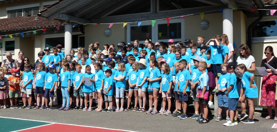 Bei strahlendem Sonnenschein begrüßten am 27. Juni 2025 um 16:00 Uhr die Kinder des Kinderbildungszentrums Schwörstadt die Gäste des diesjährigen Sommerfestes mit einem mitreißenden Eröffnungslied.