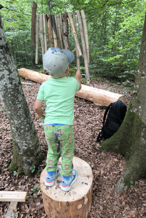 Weitere Highlights waren die neu entstandenen Balanciermöglichkeiten aus Baumstämmen und Seilen, kreative Wippenkonstruktionen, eine liebevoll eingerichtete Matschküche, ein gemütliches Vogelnest aus Naturmaterialien sowie ein selbstgebautes Waldxylophon, das die musikalischen Talente der Kinder zum Klingen brachte. Neben dem Erleben von Bewegung und Kreativität stand vor allem der Gemeinschaftssinn im Vordergrund. Die Kinder arbeiteten mit Begeisterung mit, planten mit, sammelten Materialien und probierten die neuen Angebote mit viel Freude aus.