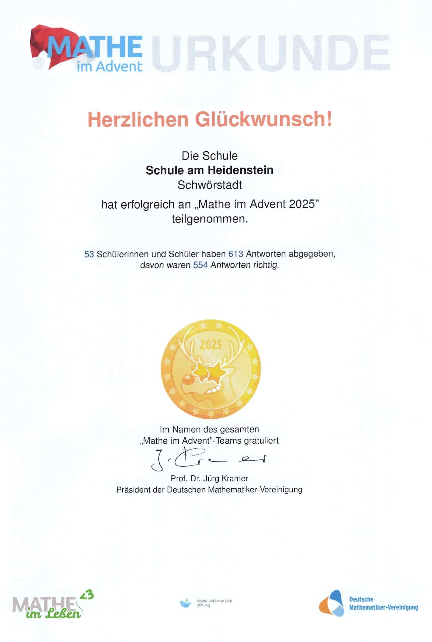 In diesem Jahr beteiligten sich besonders viele Kinder der Schule am Heidenstein an dem Wettbewerb „Mathe im Advent“.