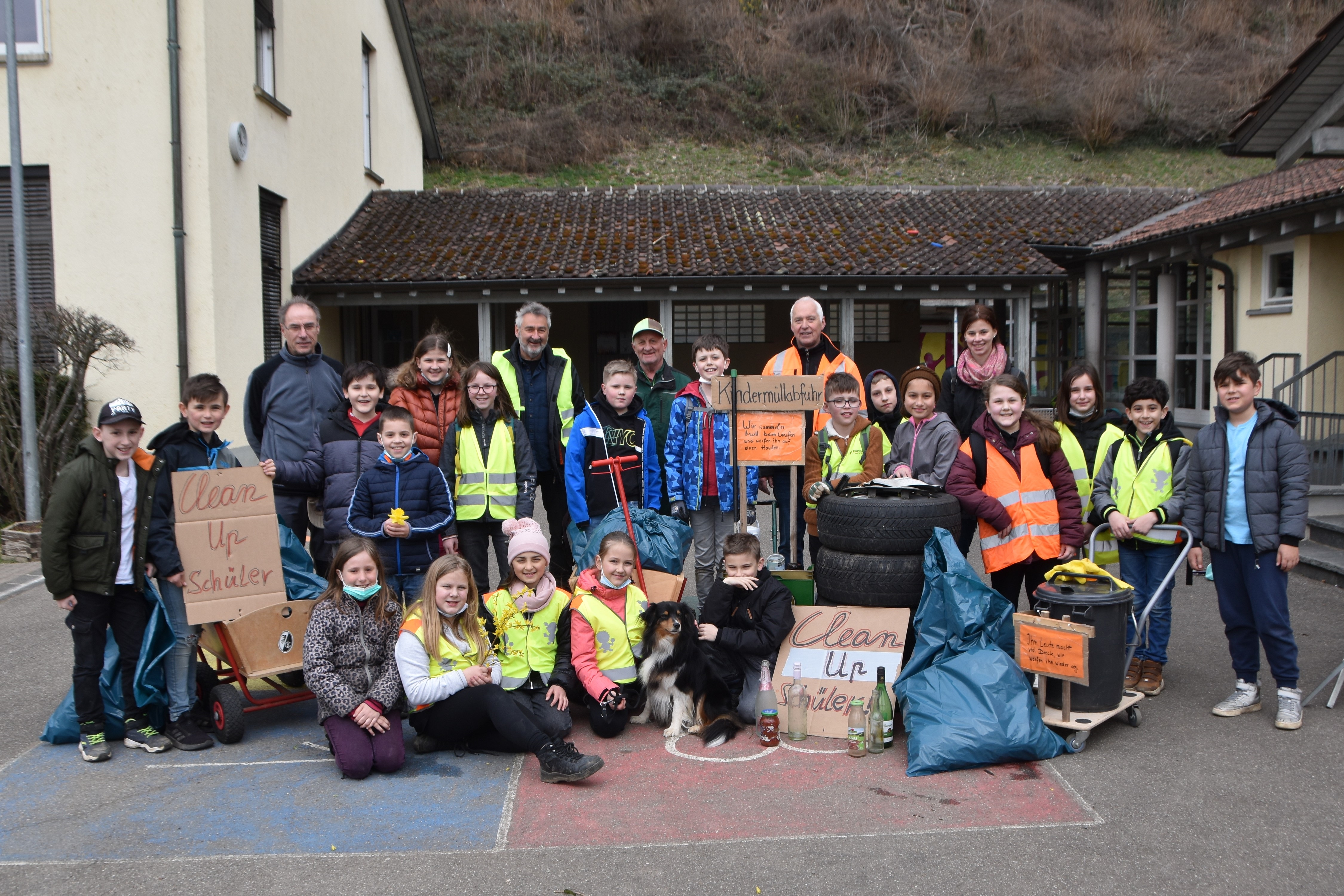 Morgens um 8:30 Uhr machten sich 19 Schüler der 4. Klasse der Schule am Heidenstein und ihre Lehrerin Chantal Dreher auf zu ihrem Clean-Up in Schwörstadt. Ausgerüstet mit Greifern, Handschuhen und Müllsäcken zogen die Schüler in vier Gruppen los. Drei Gruppen sammelten Unrat in Schwörstadt und die vierte Gruppe machte sich auf den Weg nach Niederdossenbach. „Die Aktion findet im Rahmen der Projektmodule der Naturparkschule statt“, erklärte KIBIZ-Projektleiter Helmut Hälker, denn die Grundschule bildet nicht nur zusammen mit dem Kindergarten am Heidenstein das Kinderbildungszentrum Schwörstadt, sondern ist auch eine Naturparkschule. Das Modellprogramm Kinderbildungszentrum Baden-Württemberg wird durch die Deutsche Kinder- und Jugendstiftung koordiniert und durch das Ministerium für Kultus, Jugend und Sport Baden-Württemberg gefördert.