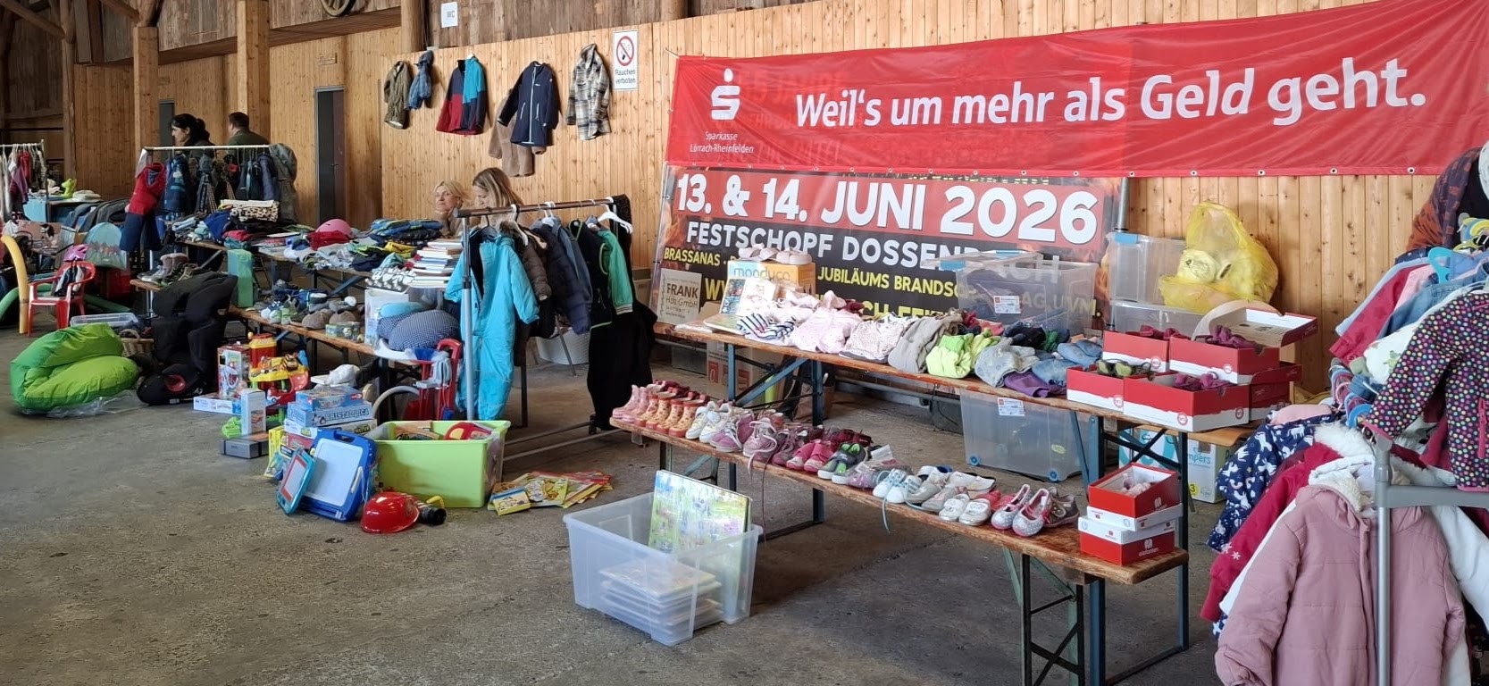 Ein großes Dankeschön gilt dem engagierten Organisationsteam, das mit tatkräftiger Unterstützung aus der Elternschaft den Flohmarkt auf die Beine stellte. Zahlreiche Aussteller aus Schwörstadt und Dossenbach trugen zum Erfolg bei. Die Sparkasse Lörrach-Rheinfelden unterstützte die Veranstaltung – hierfür spricht der Elternbeirat seinen Dank aus. Die Einnahmen der Veranstaltung kommen direkt dem Naturpark-Kindergarten Dossenbach zugute und stärken damit die pädagogische Arbeit vor Ort. „Jeder Euro fließt in Projekte, die unsere Kinder in ihrer Entwicklung unterstützen“, betont der Elternbeirat.